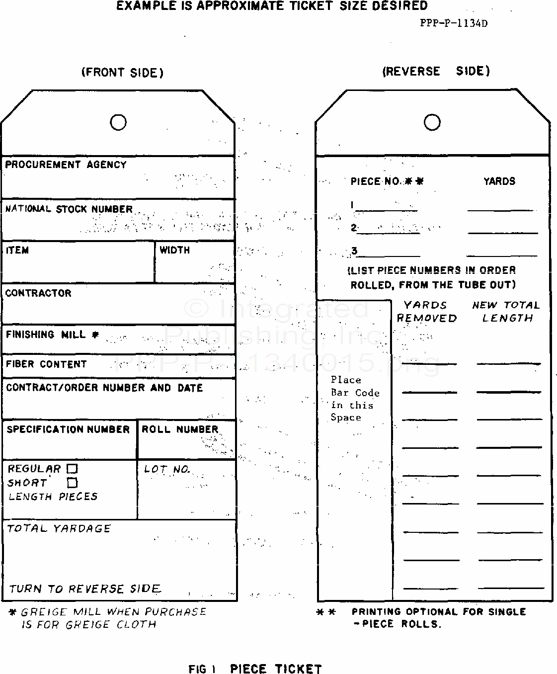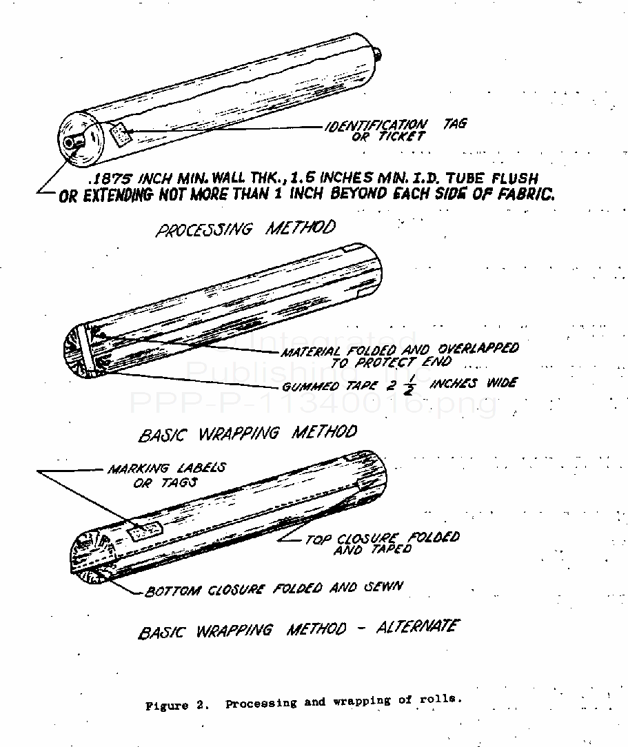 PPP-P-1134 Packaging Of Cotton And Cotton-Synthetic Fiber Blend Fabrics (Excluding Duck Fabrics) (S/S By Fed-Std-803)This specification covers the preservation, packing, and marking of cotton and cotton-synthetic fiber blend fabrics for shipment and storage.